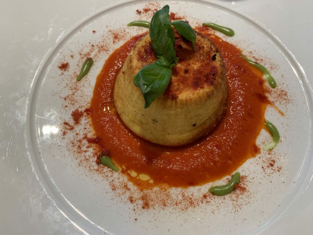 Così, la spesa del giorno della mia visita proponeva un piatto “fatto co’na zucchina – un flan di zucchine, con speck essiccato su fonduta di pecorino romano”: un po’ aggressivo ma gustoso. O la “Marese – una caprese con gamberi rossi di Mazara e bufala dop”, una forzatura che non si integra, ma separati nell’ordine, prima i gamberi e poi la bufala, la pace è fatta e si godono con grande piacere.  Ottimi i tre primi classici di amatriciana, cacio e pepe e carbonara, mentre lo speciale “tagliolino con gamberi rossi di Mazara e pistacchi di Bronte e Pachino” centra il sapore e esprime un gusto sofisticato. Nei secondi si attraversano le varianti gustative delle carni che vanno dall’anatra al maialino e al manzo.