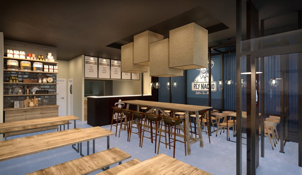 A sviluppare l’idea, curandone la progettazione e la realizzazione, l’azienda Ittielle&Co. La scelta dei materiali utilizzati per l’arredamento, legno e ferro, l’illuminazione di design e l’immagine sorridente del logo di Rey Nacho, rendono l’ambiente elegante, accogliente ma informale, in vero stile fast food.