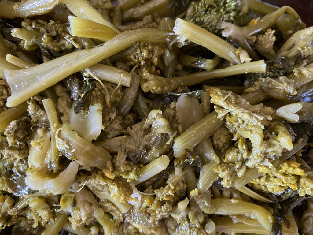 Far soffriggere uno spicchio di aglio in abbondante olio evo. Aggiungere le cime di rapa e farle cuocere bene con abbondante peperoncino.