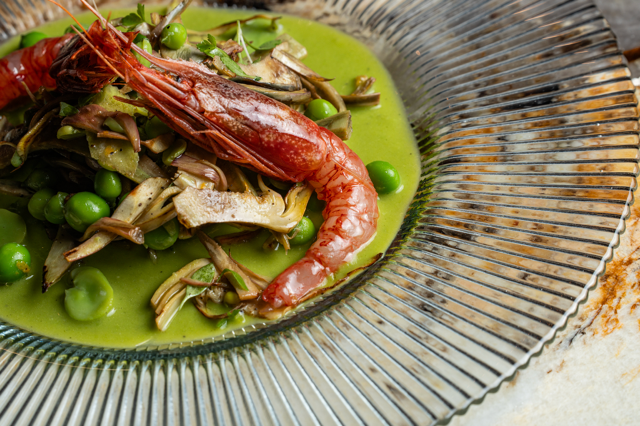 Nata come un piatto povero realizzata con ingredienti di stagione, la vignarola può essere anche arricchita con materie prime nobili. Come il Gambero Rosso di Mazara. Parola di Luca Unali, patron di Layla.