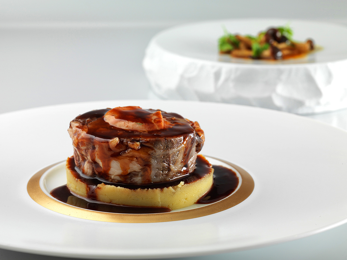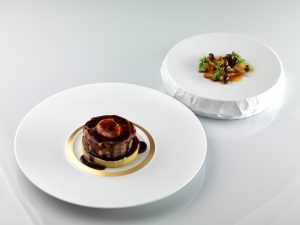 La ricetta di cui stiamo parlando è la Lepre à La Royal, una creazione che richiede tanto lavoro e altrettanto talento. La ricetta prevede una grande tecnica, materie prime di altissima qualità e circa 4 giorni di preparazione con decine di passaggi. Si presenta come una rollata di lepre ripiena di fois gras e tartufo, con una glassa al cioccolato.