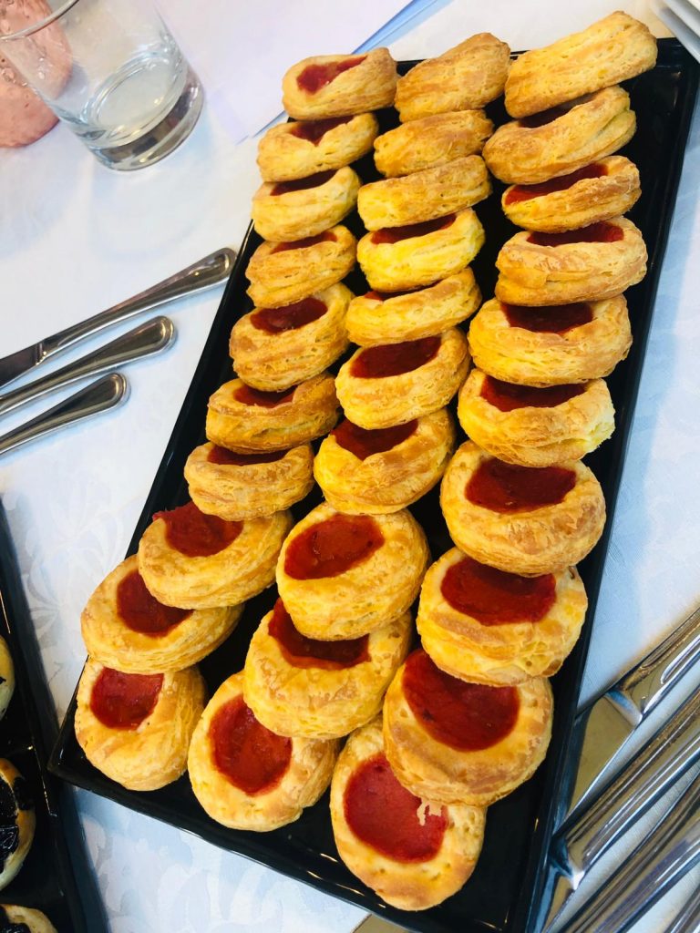 Tante anche le novità gastronomiche senza però tralasciare i cavalli di battaglia come le pizzette rosse, imperdibili per la loro friabilità e il loro intenso sapore di burro, le tartine salate (straordinarie quelle con la maionese al nero di seppia), realizzate con un pane ancora più leggero e digeribile, e la Boscaiola, pasta frolla ricoperta di uno strato di crema pasticcera, marmellata di fragola, panna e frutti di bosco.