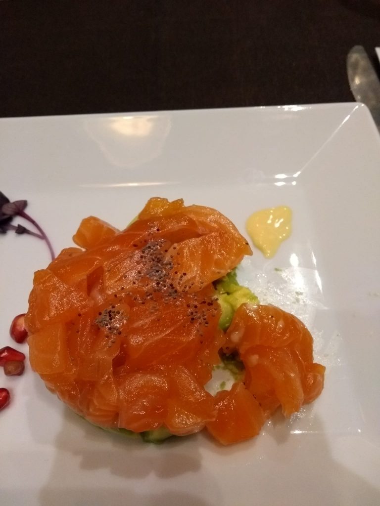 Il primo vino degustato è un’anteprima, il Pinot bianco fermo “Palazzina” 2019, prodotto in 3500 bottiglie. Una piccolissima parte di questi vino, circa l’8% fermenta in barrique di secondo e terzo passaggio, per circa 4-5 mesi. Le sensazioni di mela e lo note agrumate anticipano un ingresso in bocca elegantemente fresco e riconducibile al vigneto. L’abbinamento proposto dallo chef del Quinto Quarto è una tartare di salmone marinato Gravlax con avocado e maionese di pompelmo, assolutamente appropriato e ben valorizzata dal nostro Pinot.