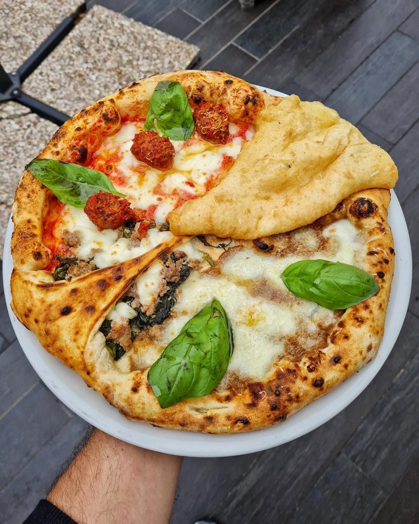 La sua pizza, godibilissima, ha un impasto scioglievole al palato, col cornicione pronunciato ma senza arrivare alle esagerazioni della ruota di carro. Il famoso pizzaiolo “social” che vanta migliaia di follower ripropone qui la fortunata formula già sperimentata in campania, con un ventaglio di pizze classiche, stagionali, e special cui si aggiungono i fritti come antipasto. Da provare oltre ai classici di Porzio la pizza poker, kellalà, il pizzimbocca e le altre prelibatezze che lo hanno consacrato sul web.