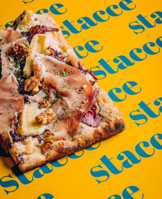 Emanuele Caldarola e Francesco Miliano titolari di Stacce, hanno messo ora Luca al timone di questa nuova apertura: un’insegna dalla verve molto romana e schietta, che in futuro aspira a diventare una catena e propone pizza in teglia alla romana rivisitata. L’impasto ad alta idratazione (80%), è di sole farine biologiche e fa dalle 48 alle 62 ore di lievitazione reale, per la massima digeribilità.