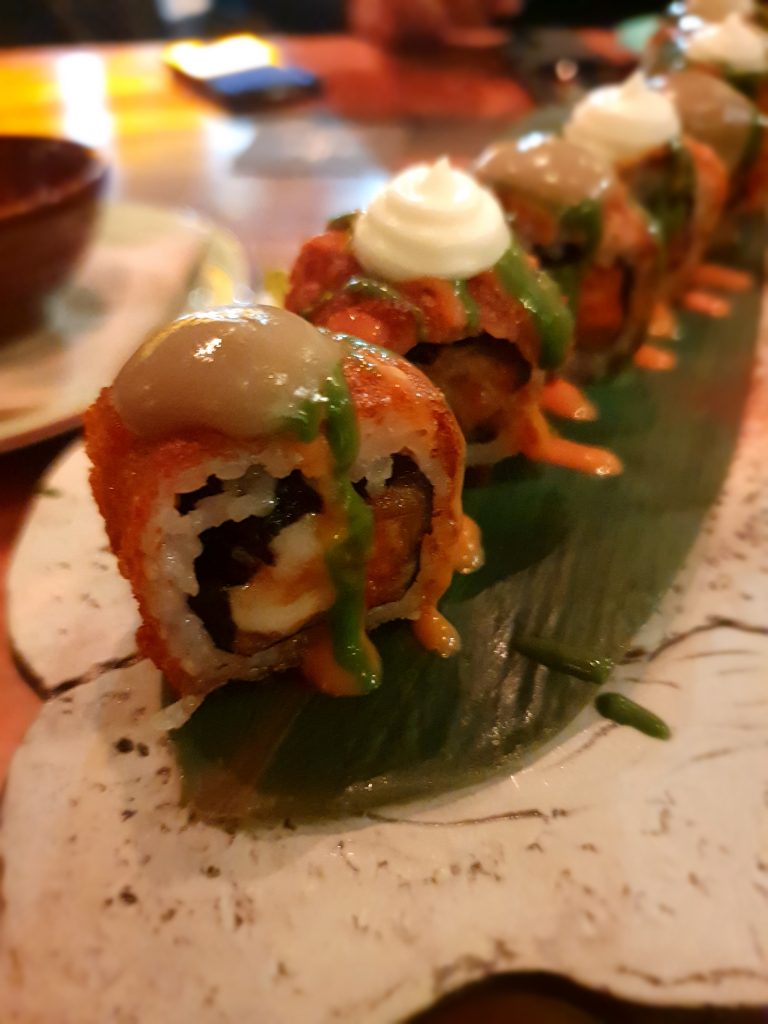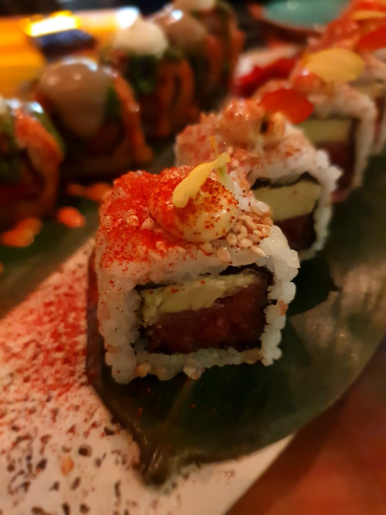 In alternativa è possibile abbinare ai drink alcune proposte in carta come i Kubla Rolls: uramaki dai gusti più disparati, di carne, pesce e verdure. Da provare il Parmigiana Roll con melanzane affumicate, salsa al basilico e cremoso di parmigiano, e il Kubla Roll con ricciola, salsa tonnata, cipolle in carpione e salsa teriyaki. O ancora il Cajun Roll con tartare di manzo, avocado, nocciole e maionese al cajun e il Sunflower Roll con tonno, burrata, polvere di olive e chips di fiori di zucca.