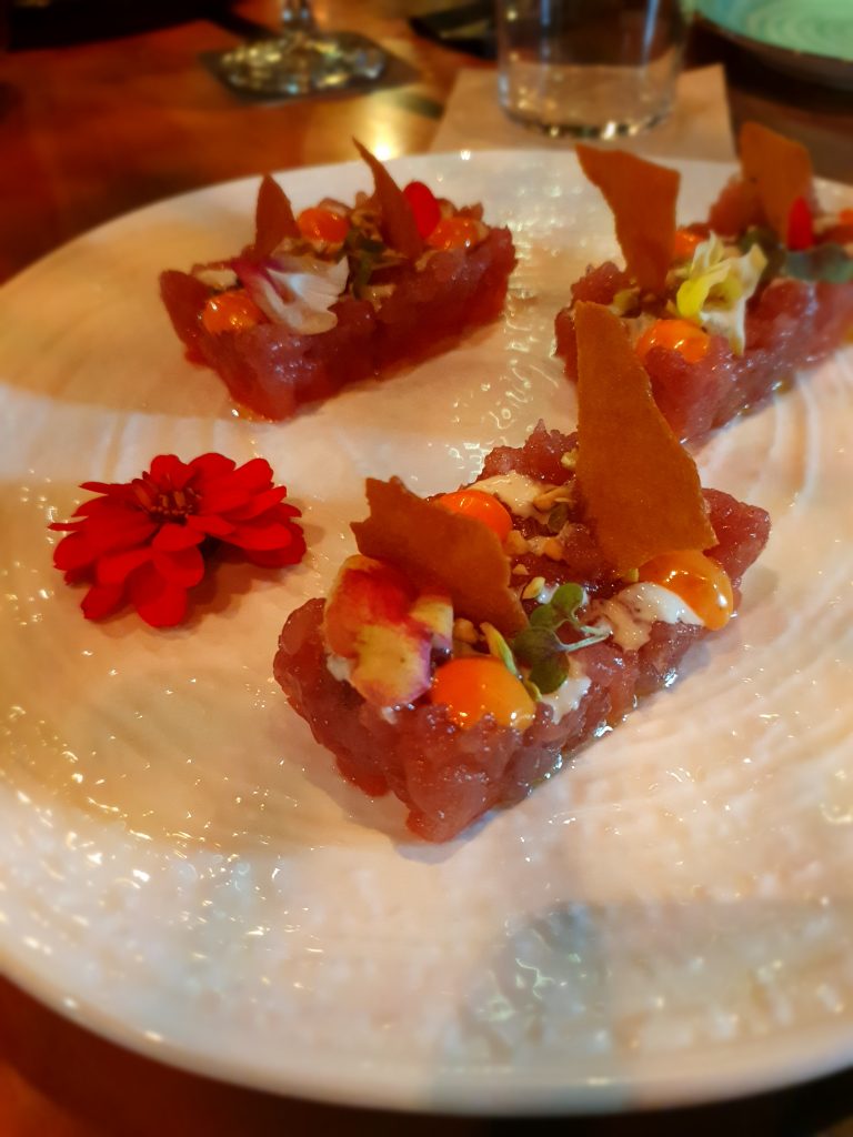 Nella sezione “Raw Bar” troviamo una gustosa Tartare di manzo con burrata, emulsione al basilico e pomodoro infornato, seguita dalla Tartare di tonno con pistacchi, pico de gallo yogurt e pane carasau soffiato.