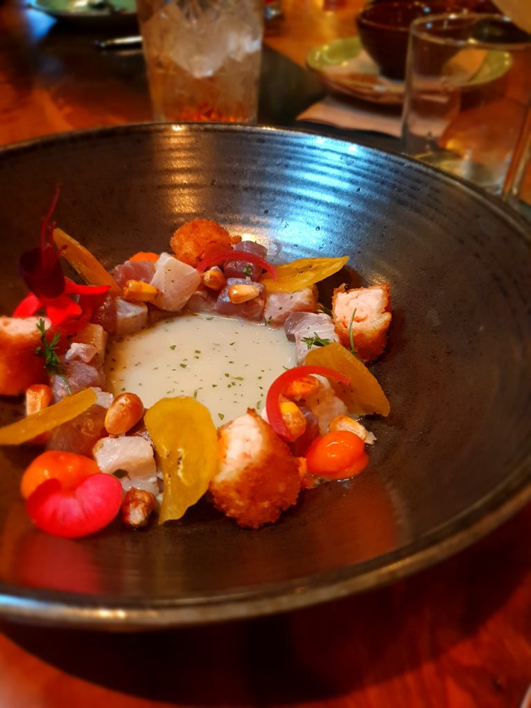 Ottimo il Polpo a la Gallega, croccante fuori e morbido dentro, accompagnato da una crema di patate davvero avvolgente. Da provare anche il Salmone alla plancha marinato al miso servito con salsa tzatziki e zucchine in tempura.