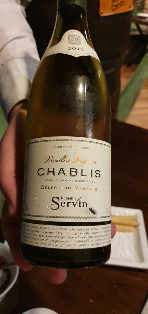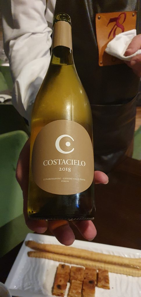 Davvero gustoso il Lum-Ici, un piatto di lumache sgusciate e scottate velocemente in padella servite con alici, lisca croccante, spugna al prezzemolo, polvere di lattuga, crema al latte e aglio e gel di lime. Un piatto sorprendente e intrigante, dai sapori ben definiti accompagnato dallo Chablis Sèlection Massale Domaine Servin.