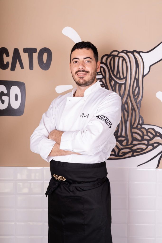 “Per il nome Spartaco ci siamo ispirati al famoso suggeritore del Conte Duval interpretato da Gigi Proietti”, ci racconta Alessandro. Infatti notiamo che sulle pareti del locale compaiono illustrazioni del celebre e poetico “incontro” tra Alberto Sordi e il “maccarone”, con tanto di citazione cinematografica: “Te m’hai provocato, io te distruggo”.