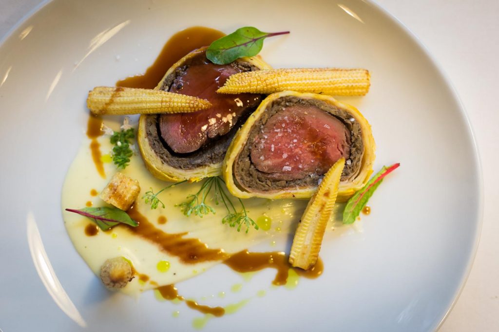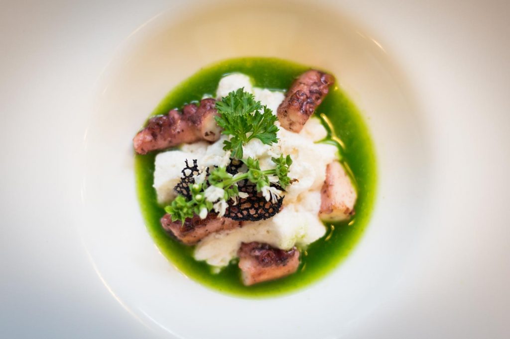 Il menu prosegue poi con “La Bassa Temperatura” che include il Filetto di agnello alla Wellington, la Pancia di maialino da latte con senape, pak choi e chutney al rabarbaro e il Polpo croccante co spuma di patate viola e ristretto di sedano.