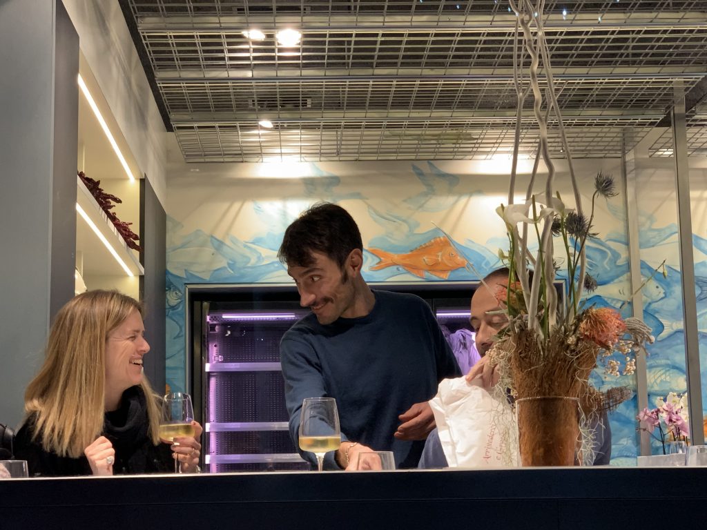 Essendo diventato un “global aliment”, ne capisce la grande qualità e freschezza al solo guardarlo e toccarlo. Così lui fornisce la materia prima e, smesso il grembiule da banco, indossa la toque in cucina dedicandosi alla preparazione e a sfilettarlo: “è un artista“, dichiara Mery che da autodidatta è diventata una cuoca a tutto tondo e conosce bene la tradizione avendola appresa da nonna e mamma.