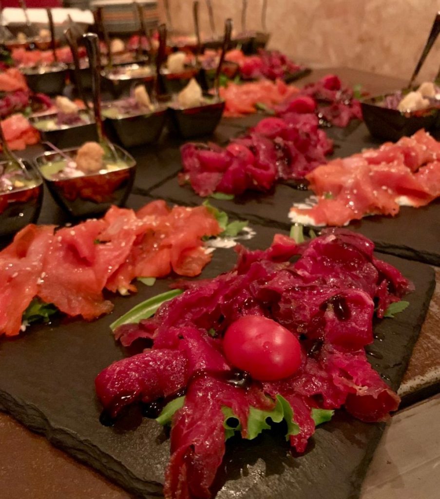 Dal Giappone agli Stati Uniti, dall’Inghilterra al Nord Europa fino al Medio Oriente e l’America Latina. Le materie prime più ricercate incontrano e si fondono con l’estro creativo dello Chef Manuel Di Castro. Il nuovo menù di Misto – Mixology e Cibarie è un vero e proprio viaggio tra gusti internazionali e un concept cosmopolita. Tra i nuovi piatti troviamo, per esempio, il Gravlax di salmone selvatico Sockeye dell’Alaska reinterpretato dallo chef con crema di formaggio fresco alle erbette, gocce al gel di lime. Un’altra specialità è l’Hummus viola con l’aggiunta all’hummus di ceci della rapa rossa e lo yogurt di soia bilanciati con il pepe di Sichuan, il lime e il timo.