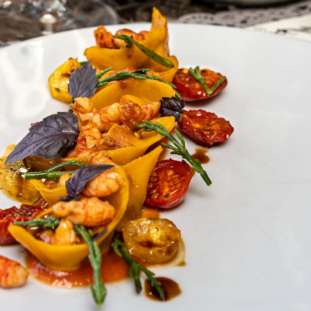 Si parte dagli ‘Assaggi dello Chef’ (3, 6 o 9 piatti a 20, 35 o 50 euro) per affidarsi alle scelte di Fabio Sardella, per poi proseguire con ‘Scegli Tu’, che offre la possibilità di scegliere ogni singolo piatto a 7 euro, e giungere quindi ad ‘Assaggio piglia tutto’, un vero e proprio ‘all in’ per provare tutte le 16 proposte gastronomiche (80 euro), una formula interessante anche da condividere con gli amici. Un menu senza tipologie di portata, un format libero per rendere informale la cucina formale e che dà spazio ad una filosofia gastronomica all’insegna della ricerca e del divertimento. Un nuovo menu che rompe col cliché del ‘percorso classico’ e che sarà disponibile fuori dallo schema degli orari per donare ai clienti un’esperienza originale. Tra le 16 proposte ci sono già dei must come il già apprezzato ‘Guancia, gambero rosso e lattuga’ ma anche ‘Ossobuco, zafferano e bietola’, ‘Pastrami, teriyaki e patate’ mentre tra i dessert spicca ‘Mascarpone, cannella e nocciole’ e la ‘Cheesecake coi frutti rossi’. Gli assaggi possono essere abbinati a vini internazionali o a un cocktail, o un Gin scelta dalla Drink list del locale firmata dal bartender Mattia Ceremigna.
