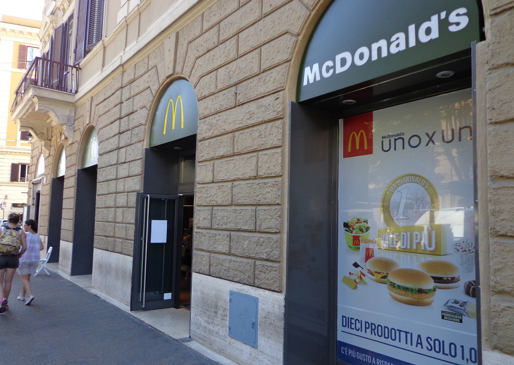 A 30 anni dall’apertura del suo primo ristorante a Roma, quello di Piazza di Spagna (esordio che tra l’altro causò non meno critiche all’epoca), McDonald’s continua a espandere il suo impero all’ombra del Colosseo. Ad oggi si contano ben 48 indirizzi a cui la stessa azienda attribuisce l’aggettivo “territoriali”, rimarcando che quasi l’85% di prodotti e dei servizi qui offerti provengono da stabilimenti italiani.