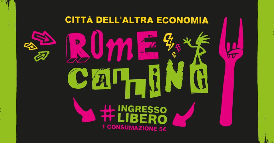 | ROME CALLING! Lunedì 21 giugno | h.18 presso il Collettivo Gastronomico Testaccio Città dell’Altra Economia Largo Dino Frisullo, 1 – Roma WhatsApp e Telefono 389 248 8413 |