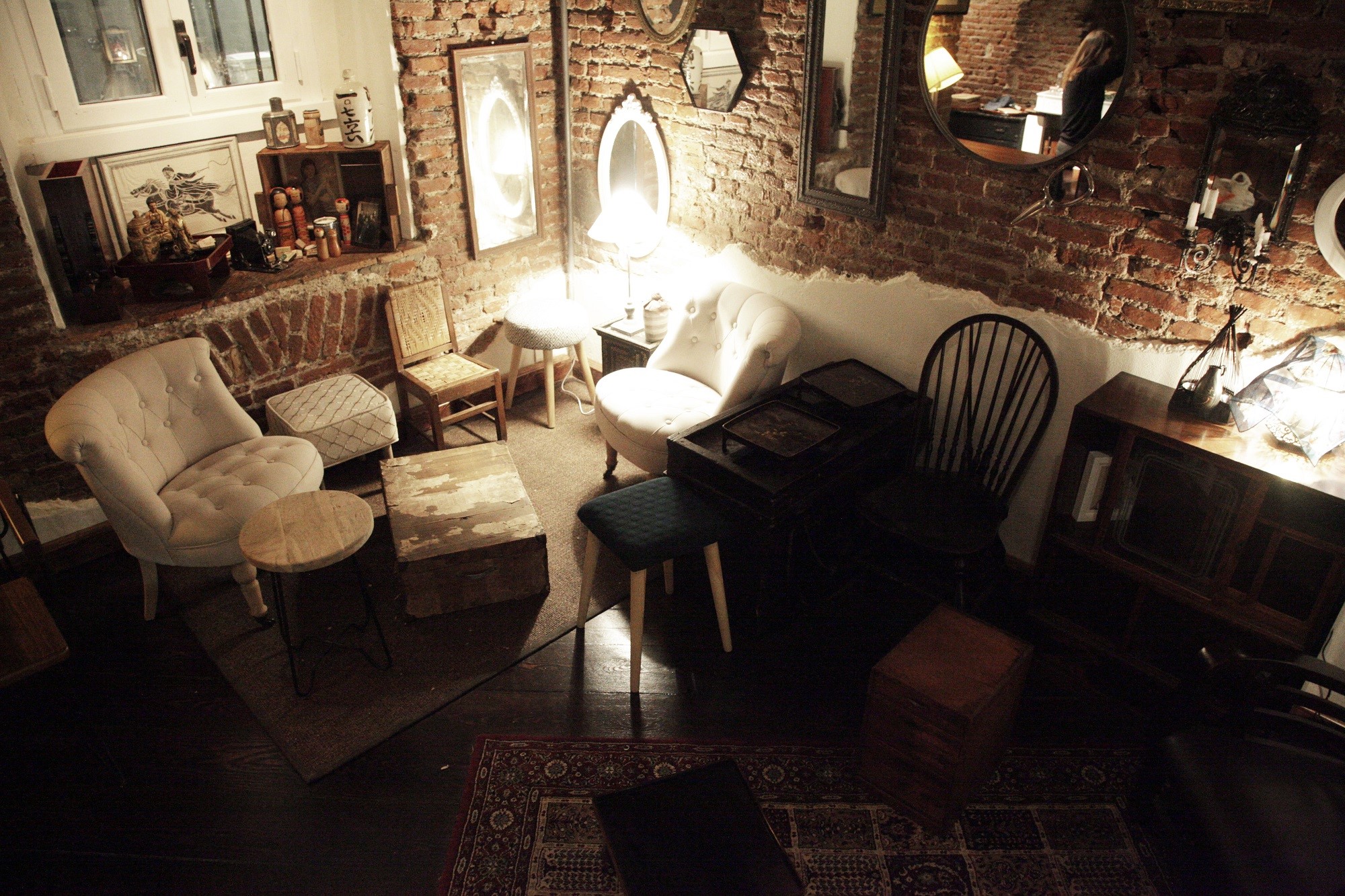 Anche stile ed arredamento del locale convolano a nozze con il rituale del sake: illuminazione calda e soffusa; divani, divanetti, sedie, poltrone, tavoli, tavolini, quadri e specchi accuratamente scelti in mercati d’antiquariato per avvolgere caldamente gli ospiti; pareti volutamente grezze, antiche, sapienti.