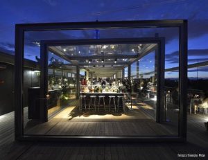 Inaugurata in occasione di EXPO 2015 su prgetto dello studio OBR, ristrutturando l’originale terrazza della Triennale di Giovanni Muzio del 1933, la TERRAZZA TRIENNALE è la location di riferimento della Design Week con il suo bar-ristorante che guarda lo skyline di Milano, di ieri (il Castello Sforzesco) e di domani (i grattacieli di Porta Nuova), uniti dal polmone verde di Parco Sempione.