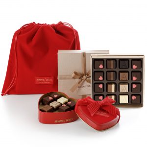 Armani Dolci festeggia San Valentino 2018 con raffinati cioccolatini e un romantico packaging dedicato, declinato in due diverse proposte.