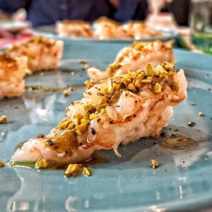 Al Kitchen Society di via Chizzolini 2 ang via Piero della Francesca, un menu di assaggi specialità dello chef Alex Seveso che esalta la sensualità, nel gusto e alla vista. Un ristorante fuori dal comune per una food experience che combina magistralmente l’estetica e la tecnica della cucina del Sol Levante con i sapori e i profumi dei migliori ingredienti del Bel Paese, per un risultato unico e sorprendente. Il menù comprende: Patanegra con pan y tomate; Anchoas del cantabrico con alioli e prezzemolo; Carpaccio di orata fusion; Tartare di branzino con verdure e pistacchio o tartare di gamberi rossi con crema di gamberi e edamame; Sashimi di salmone scottato con le sue uova, noci e crema di wasabi leggero o Sashimi di tonno scottato con olive, basilico e avocado; Polpo salad; Nigiri rocher; 6 uramaki rolls al tonno con crema di basilico e olive taggiasche; 6 uramaki rolls orata burro e salvia; 6uramaki rolls di granchio reale con crema di sesamo; 6 uramaki rolls dragon Kitchen Society; Dessert a scelta . Il prezzo? 75euro a testa, bevande escluse.