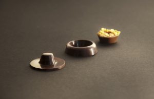 Shockino è il cioccolatino più originale che ci sia. Si tratta di una pralina componibile di tre elementi, perfetta come idea regalo per San Valentino. La pralina pesa circa 14 gr ed è composta da tre elementi, un cuore centrale caratterizzato da una serie di granelle come pinoli, noci e nocciole, un anello esterno e una base ripieni, realizzati con la tecnica della ganache o con confetture di altissima qualità.