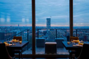 Ci si trova, dopo una velocissima ascesa nell’ascensore a vetri, al XX piano della WJC Tower, nuova costruzione del quartiere Portello, a poca distanza dal futuristico City Life. E’ il ristorante più alto d’Italia e appena si entra lo sguardo spazia sull’intero skyline di Milano, per un panorama a 360 gradi sulla città meneghina, con il sole allo zenit per il pranzo e un romantico tramonto per la cena. Per la cena più romantica dell’anno lo chef Fabrizio Ferrari propone un menu a 95 euro a 5 portate con si concludono con il sensuale dessert del pastry chef Beppe Allegretta, “Fix You”.
