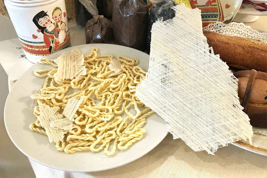 Dopo pranzo Vito mi racconta delle signore che gli fanno i filindeu, questa pasta molto particolare, sottile come i capelli d’angelo, intrecciata in un certo modo, e poi di un’altra signora di Sant’Antioco, “il regno del bisso”.