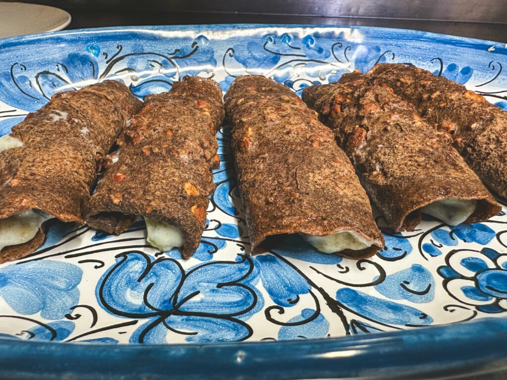 Ecco perché all’interno dell’ova murina, infatti, c’è il biancomangiare, una crema di latte e cannella spesso utilizzata nella farcitura di molti dolci conventuali, ottima anche da mangiare come dessert al cucchiaio. Quanto all’origine del nome, quella più accreditata la farebbe risalire alle Uova Moresche perché alcuni ingredienti, come il cacao, la cannella e la vaniglia, essenziali per dare il sapore al dolce, furono importati dai Mori. Secondo altri, invece, il nome murina è mutuato dalla colorazione della pelle del pesce murena a cui la crepe al cacao e mandorle che costituisce la “scorza” del cannolo. La ricetta originale prevede l’aggiunta anche di zuccata come farcitura o, un’ altra variante, prevede le scaglie o gocce di cioccolato all’interno della crema.