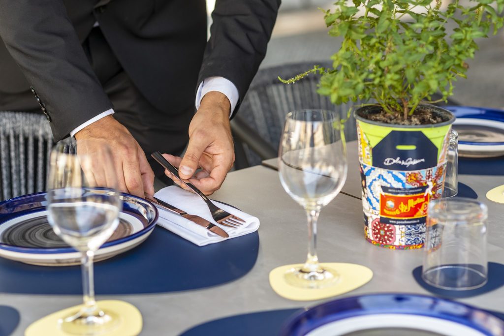 Mantecature ipnotiche, pasta ideologicamente “risottata” nei suoi condimenti, salti finali in padella. Materie prime sotto i riflettori, dall’olio che si degusta all’arrivo, fino al Limoncello in chiusura. In mezzo, un mondo di pasta che sfreccia dal ragù alla genovese, alla Colataura di Alici, passando per una salsa di astice profumata di mandarino. Con l’eleganza delle ceramiche di Vietri e un table setting essenziale e di gran gusto. Le posate cambiano colore e formato in base al piatto che si ordina, in un turbinio di cortesia e gioco messo in scena da maitre e sommelier. Si cucina a vista, piastre a induzione incastonate in un bancone in stile “sushi-bar”. Agganciare la tradizione per proiettarla in una dimensione internazionale.