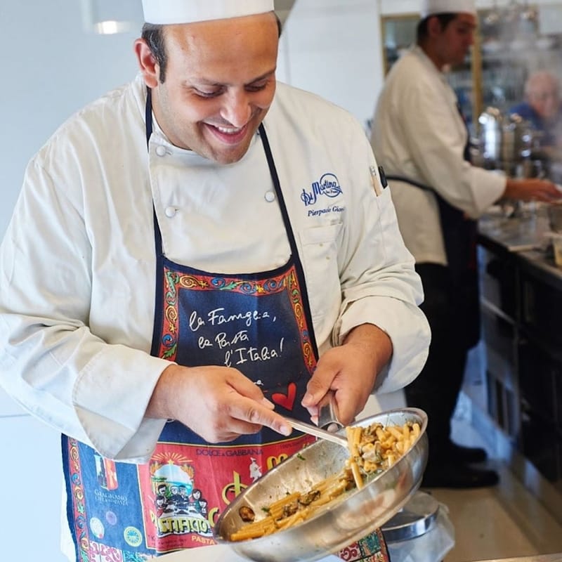 Sea Front Di Martino Pasta Bar è moderno, ma sa di casa. Rivoluzionario eppure racconta l’Italia autentica, in particolare il sud dei padroni di casa. Insomma, uno star bene. Siedi, osservi, assaggi. E assaggi di nuovo. Le proposte sono accattivanti da morire, in continua evoluzione per seguire le stagioni. Nell’imbarazzo della scelta, si può optare per un menu degustazione e avviarsi su strade ad alto tasso glicemico. Il tempio del carboidrato, voluto dal patron Giuseppe Di Martino, garantisce qualità e dispensa il buonumore a suon di spaghetti e ziti spezzati. Per gli irriducibili del dopo pasto, non mancano ottime proposte a tutto zucchero.