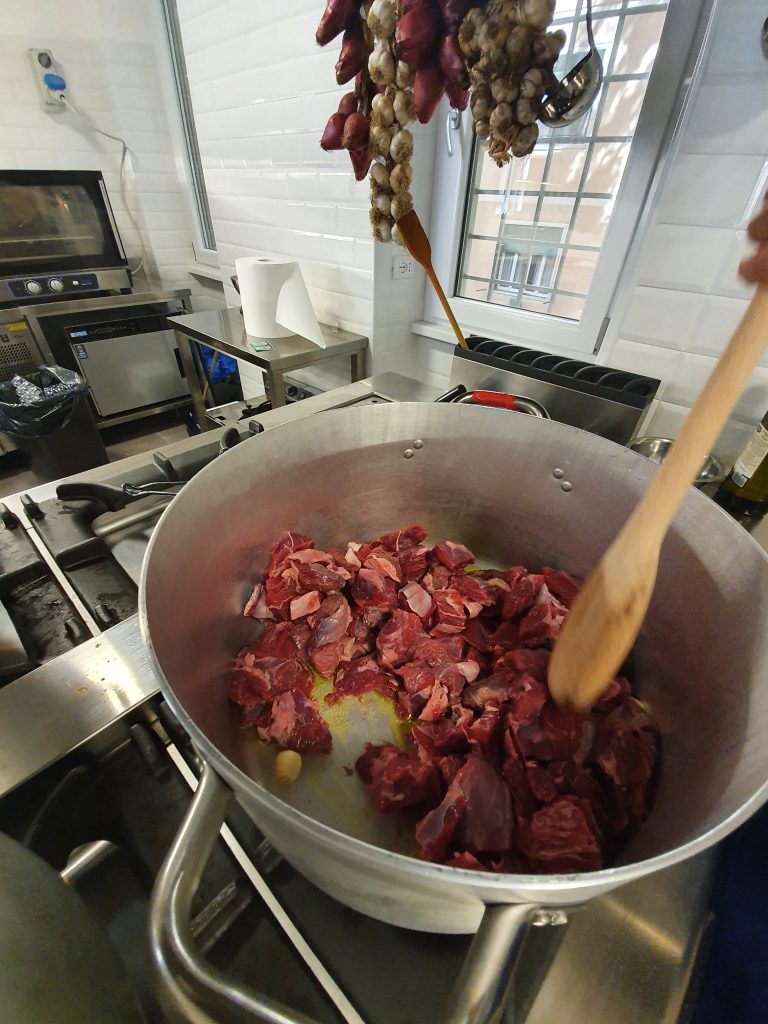 “Nella nostra cucina prepariamo tutto, dall’antipasto al dolce. – ci racconta Alessandro – È una cucina certificata Kosher di carne. Perciò tutto quello che facciamo, lo realizziamo senza prodotti a base di latte. Anche nei dolci lo sostituiamo con la margarina e latte di soia. Abbiamo già realizzato diverse cooking class perché ci teniamo a diffondere e far conoscere questo tipo di cucina. Abbiamo dedicato, ad esempio, una lezione ai saltimbocca alla romana ma rivisitati, sostituendo il prosciutto di maiale con un [buonissimo, ndr] affettato di carne secca. Tutti i prodotti che utilizziamo sono Kosher. Siamo molto attenti alla stagionalità dei prodotti soprattutto per quanto riguarda frutta e verdura che acquistiamo solamente da produttori di fiducia.“