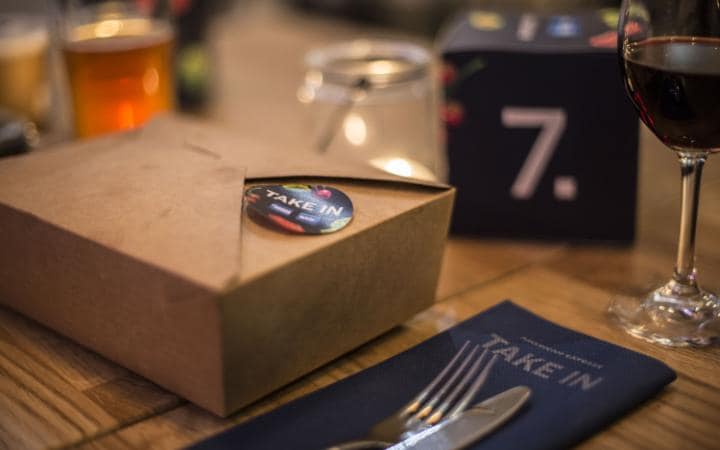 Take In è nato a gennaio in Finlandia, a Helsinki, ed è sponsorizzato da American Express e dalla popolare app Wolt. Per ora si tratta di un esperimento (la sua fase di rodaggio, per così dire, terminerà ad aprile) che verte tutto sul concetto di asporto, da consumare però all’interno del locale.