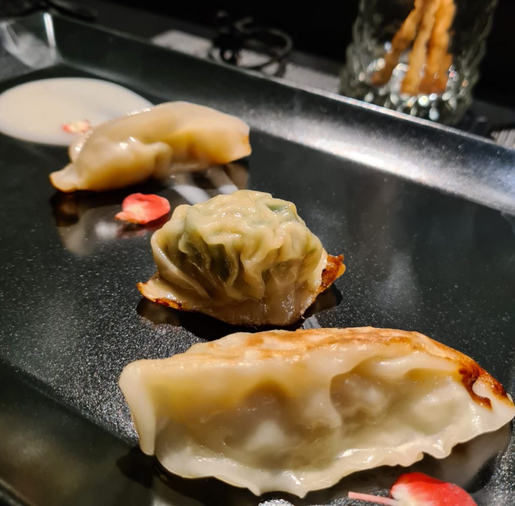 Standing ovation per i gyoza (di pesce, carne e verdure) alla piastra, accompagnati da un’eccellente tazza di brodo vegetale arricchito con katsuobushi e tuorlo dell’uovo. Un consommè, vero e proprio comfort food, perfetto per esaltare i delicati sapori dei ravioli.