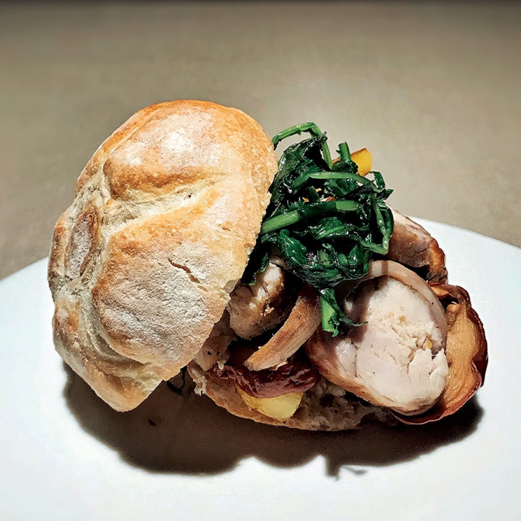 Angelo Troiani proporrà un menu ispirato al bianco e fatto di ingredienti sani e genuini: Alici, rosmarino e fichi (8 sesterzi), Rosetta, kebab di coniglio, porcini fritti, pesche spadellate e cicoria arrosto (8 sesterzi), Pappardelle ricotta, burro di canapa, prugne, limone e parmigiano di champignon (10) e Sottobosco (6 sesterzi).