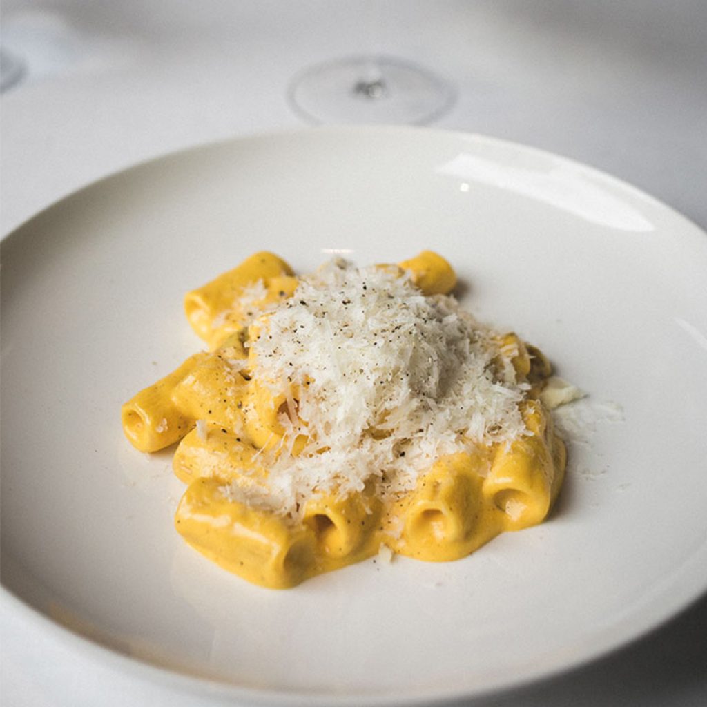 Il suo ampio bagaglio tecnico gli consente di realizzare piatti creativi e ricercati, anche con ingredienti internazionali, ma non dimentica i grandi classici della tradizione, come i suoi inimitabili Bucatini all’Amatriciana.