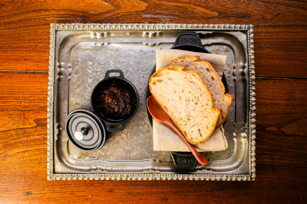 Tra le proposte in menu, infatti, non mancano portate da condividere ma anche fuori carta ogni giorno diversi in basa alla reperibilità delle materie prime sul mercato. Spazio a piatti come le Crespelle acqua e farina con funghi e chimichurri e Crostone di pane alla griglia con brodo di carne e ragù di funghi.