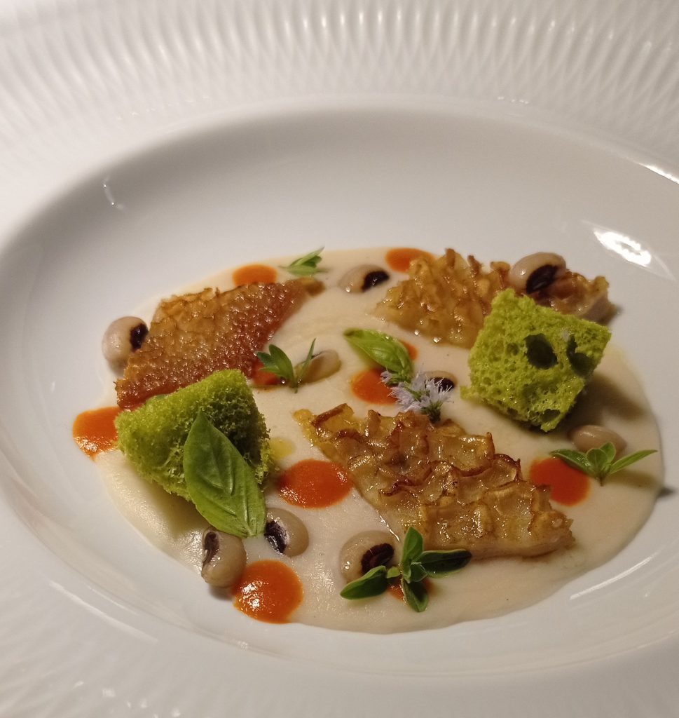 Contro tutti i pronostici che si potrebbero azzardare in una terrazza sul mare, gran finale a base di trippa. Lo chef Paolo Montella gioca la carta della sua tradizione contadina. “La trippa è un piatto a cui sono particolarmente affezionato. Ho trovato il coraggio di proporre un quinto quarto sul mare. Come da tradizione, la servo con i fagioli”.