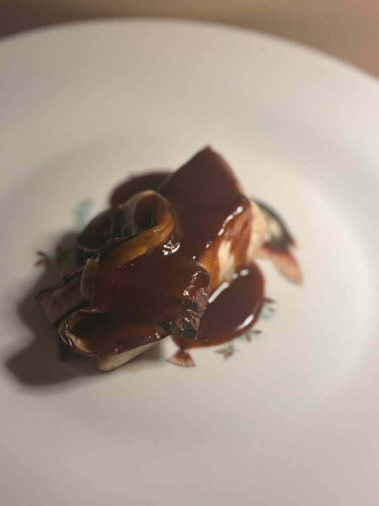 Quando il pesce è meno ricercato, è la lavorazione a esaltarne il carattere. La ricciola, ad esempio, resa più turgida da una salagione a secco prima di essere scottata in padella e accompagnata da un curry verde e zucca o da un fondo bruno pechinese. Il risultato è un piatto profondo, stratificato, che gioca tra potenza e precisione.