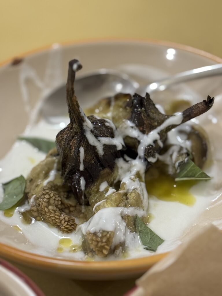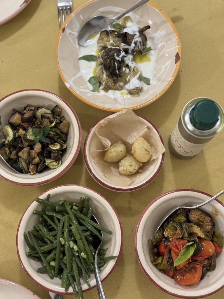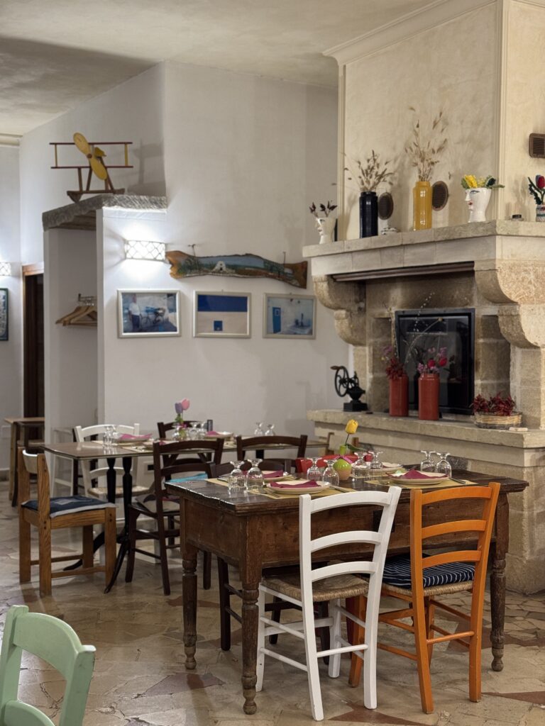 L’ambiente conserva l’atmosfera di casa: pareti colorate, peperoncini appesi, un cortile che accoglie come un abbraccio. Il menù è un viaggio nei sapori salentini più autentici. Non mancano i piatti simbolo come le pittule, le fave e cicorie, la parmigiana o i maritati con le polpette. Ma a questi si affiancano creazioni più leggere e moderne, come le melanzane con crema di yogurt alla menta, a dimostrazione che la tradizione può aprirsi a nuove strade con naturalezza.