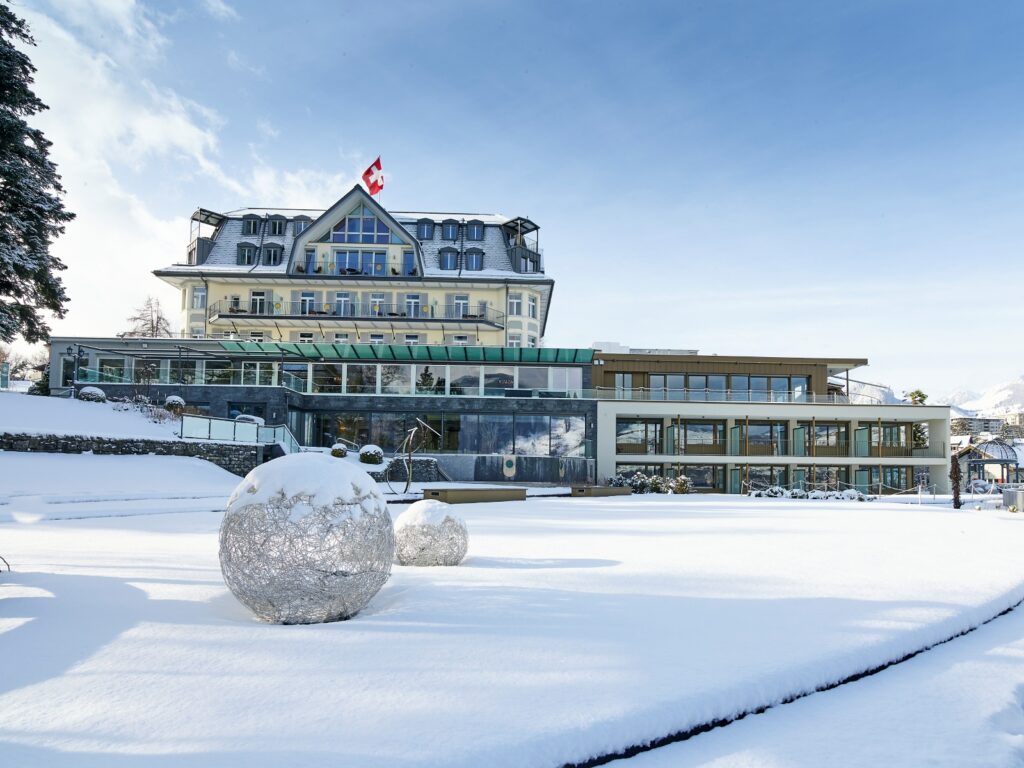 Chi sceglie di pernottare in una delle diverse tappe raggiunte dal treno panoramico, ha la possibilità di trascorrere la notte in uno degli hotel iconici che raccontano la storia e l’anima più elegante della Svizzera. A Berna, lo ZOLLHAUS – One Suite Hotel regala un’esperienza davvero unica: l’intera dimora privata si affaccia sul fiume Aare e sul celebre BärenPark, dove gli orsi diventano protagonisti discreti ma affascinanti della vista. Dal terrazzo o dalle ampie finestre, gli ospiti possono osservare questi maestosi animali nel loro habitat cittadino. L’alloggio su due piani unisce design contemporaneo, comfort esclusivi e panorami mozzafiato sulla zona vecchia e sul Bern Munster, creando un rifugio intimo che fonde charme urbano, privacy e l’emozione di vivere fianco a fianco con la fauna simbolo del luogo.