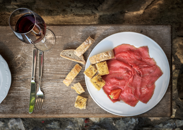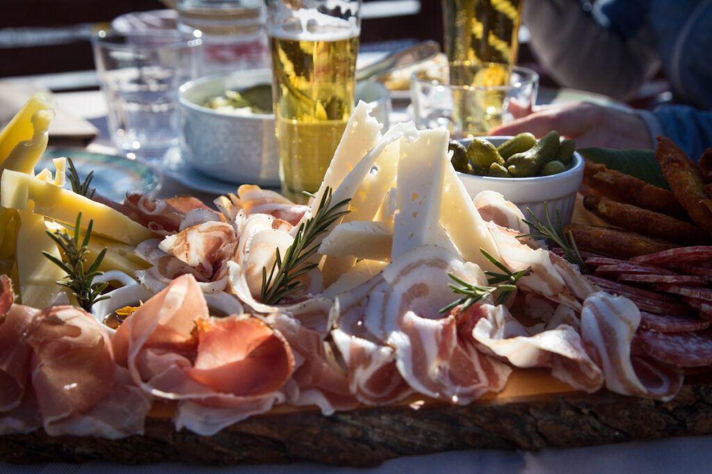 Da segnare nella mappa “foodie” è pure il Family Chalet Dosson, che vanta una meravigliosa zona all’aperto nel mezzo di un ampio prato, a 1450 metri di quota, con vista sulle Dolomiti di Brenta. È questo il punto di riferimento per una pausa sulle piste della Paganella. La cucina è trentina creativa, con ingredienti del territorio e opzioni vegetariane. Negli antipasti si trovano il flan di canederlo, il carpaccio di trota salmonata, i bocconcini di speck e caciotta. E non mancano le tartare di salmone, Angus, tonno rosso e di carpaccio di carne salada. Una tipicità, quest’ultima, di carne bovina magra (girello o fesa) salmistrata a secco con sale, aglio, ginepro e erbe, poi stagionata tra le 2 e le 4 settimane. Tra i primi, invece, si fanno spazio i paccheri mari e monti, gli spaghetti con rapa rossa e gorgonzola, i bauletti ai porcini, i tagliolini con selvaggina.