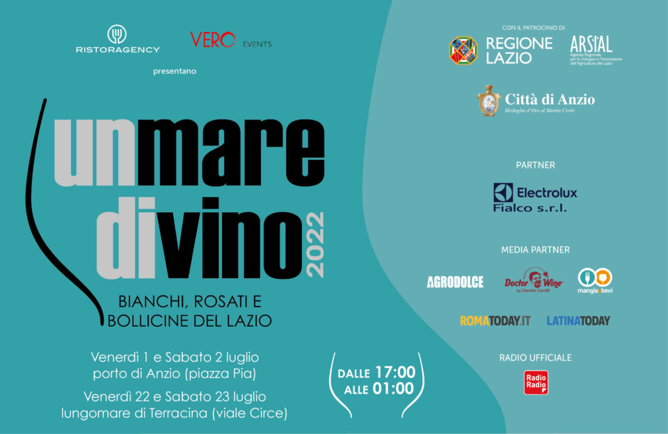 Organizzato da RistorAgency e Vero Events, con il patrocinio della Regione Lazio e dell’Arsial (Agenzia Regionale per lo Sviluppo e l’Innovazione dell’Agricoltura del Lazio), Un Mare diVino 2022 – torna così, dopo il successo delle passate edizioni, a illuminare il litorale laziale portando eccellenti produzioni vinicole, gastronomiche e chef e produttori a incontrarsi con il pubblico di appassionati in riva al mare, sottolineando la sete di qualità nel segno della sana convivialità, tra panorami di mare, fascino dei porti e alberi maestri.