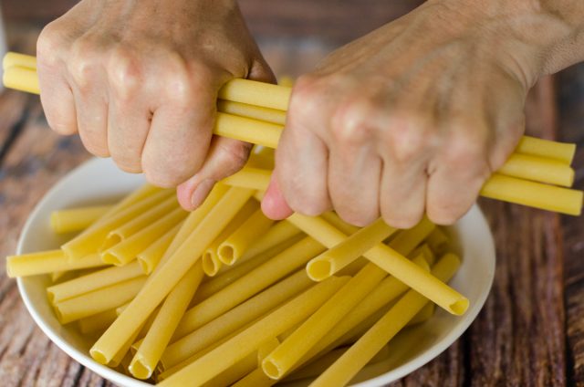 Lato carne, il pezzo più usato è il “lacierto” (girello), seguito da “corazza” (biancostato di reale, taglio bovino di seconda scelta, molto saporito). Oppure colarda (scamone) o muscolo dello stinco. Ed è un attimo che la ricetta diventa anche una questione di status. I “ricchi”, per esempio, preferiscono utilizzare il primo taglio di “annecchia” (vitello), mentre per quanto riguarda la pasta tutti concordano sugli “ziti” spezzati a mano. I maccheroni, per dirla all’antica. E mentre si spezza, i frammenti di pasta vanno lasciati cadere nella pentola con il ragù, il loro amido addenserà a meraviglia il condimento. Non una ricetta, ma un rituale.