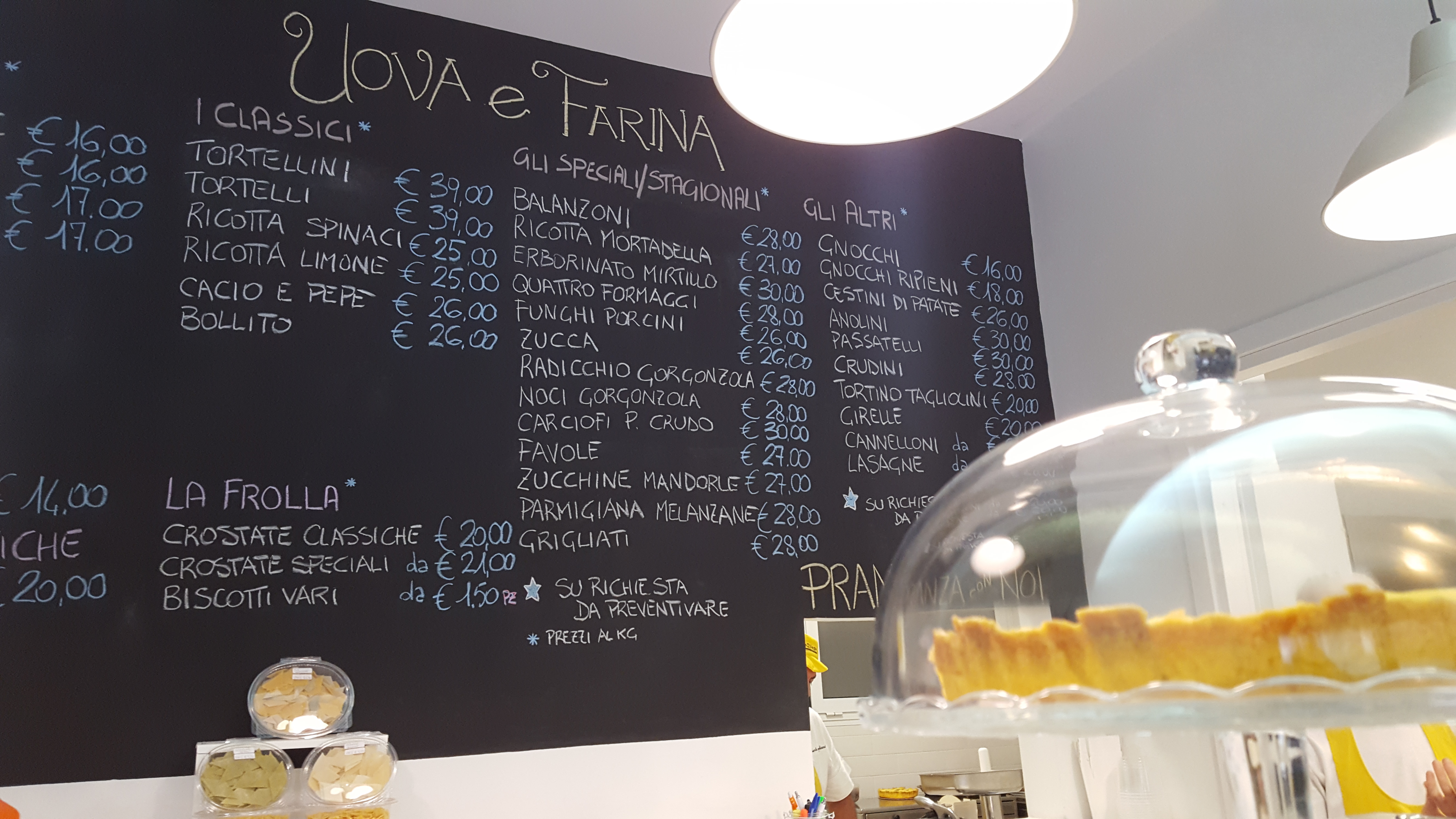 Sulla grande lavagna dietro al bancone, sono elencate tutte le tipologie di pasta disponibili secondo la stagionalità dei prodotti. Tra i classici tagliatelle, pappardelle, tonnarelli e fettuccine. E poi tortellini, tortelli di ricotta e spinaci, ricotta e limone, cacio e pepe e bollito. Tra gli special i balanzoni, tortelli di ricotta e mortadella o erborinato e mirtillo, quattro formaggi o radicchio e gorgonzola. E ancora gnocchi, lasagne, passatelli e cannelloni.