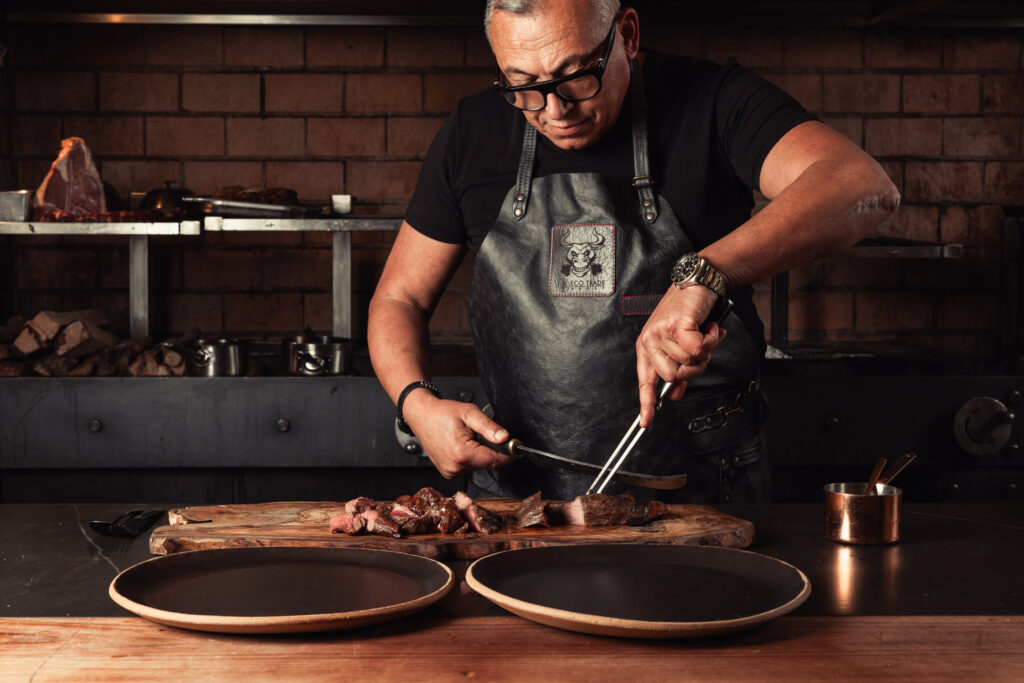 Il percorso si apre con Pinchos di Chateaubriand e bacon Vergara, prosegue con Cecina de LeónCarpaccio di Chuleta maturata e Bucatini all’amatriciana con bacon di Black Angus.