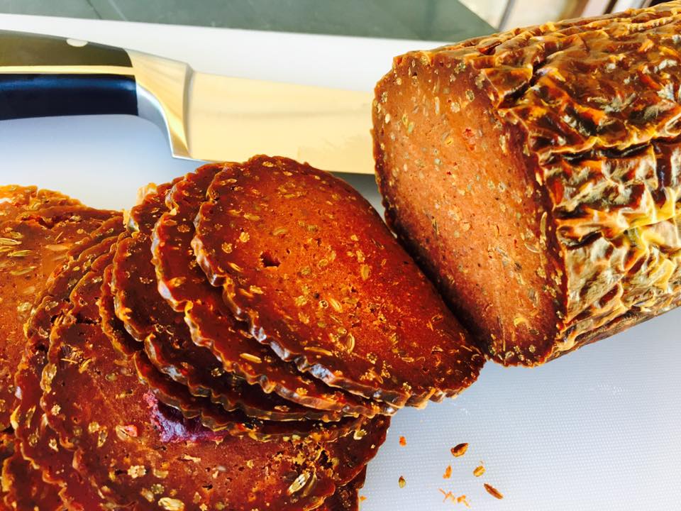 «In famiglia – racconta Fabio – siamo “vegani etici”, contrari quindi alla macellazione degli animali . Da molti anni seguiamo la dieta vegana e abbiamo riscontrato i vantaggi per la salute di un’alimentazione priva dei grassi saturi della carne. Abbiamo così deciso di avviare la produzione e la vendita di “salumi vegani”».