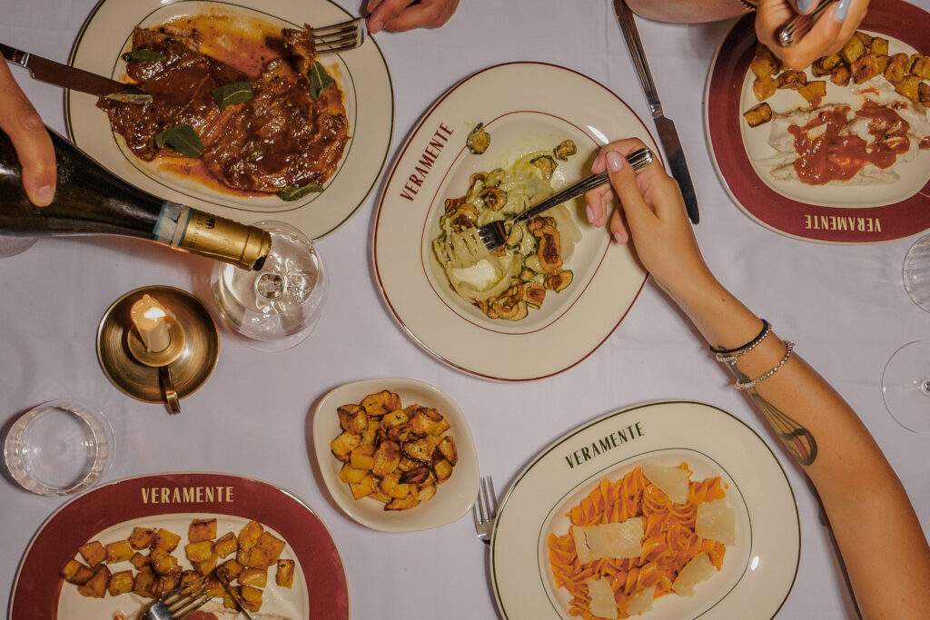 Veramente è un ristorante che celebra la cultura tutta italiana dello stare bene a tavola. Lo fa attraverso sapori autentici di piatti tradizionali realizzati a regola d’arte e un’atmosfera accogliente e conviviale dei pranzi in famiglia nella cucina di casa. Aperto a luglio 2024 nel cuore dello storico quartiere milanese di Brera, in via Palermo 11, Veramente, tra i migliori Ristoranti d’Italia 2026 secondo il Gambero Rosso, è un luogo felice, in cui ritrovare il piacere del buon cibo assaporando quelle ricette senza tempo. Dalla parmigiana di melanzane alle linguine alle vongole. Dalla fiorentina ai saltimbocca alla romana. Dal tiramisù al babà – che, da Nord a Sud, hanno fatto la storia della cucina italiana. Preparati “come una volta”, perfetti nella loro assoluta semplicità, sono piatti da gustare tra chiacchiere e musica in un ambiente dal sapore rétro, accompagnati da un calice di vino rigorosamente italiano.