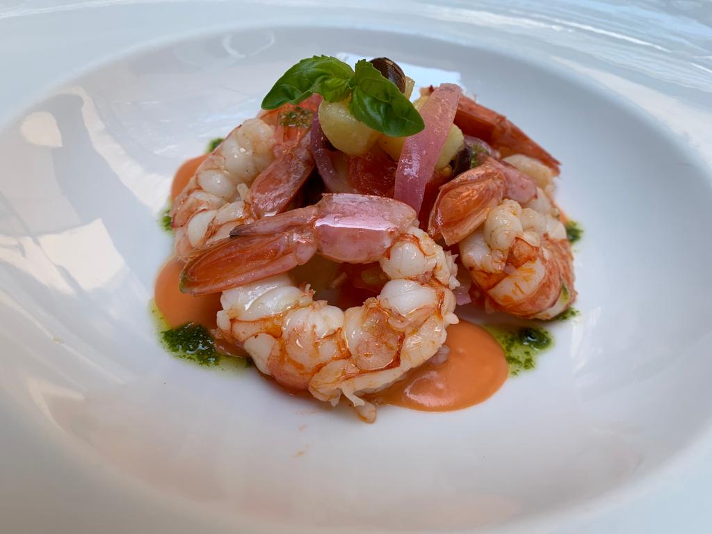 Lo stile dello chef è classico, baciato da contaminazioni legate all’infanzia come emerge dall’antipasto “mazzancolle alla catalana” in cui i crostacei sono abbinati ai vegetali che da piccolo Andrea raccoglieva in campagna. Una gran bella eredità familiare.