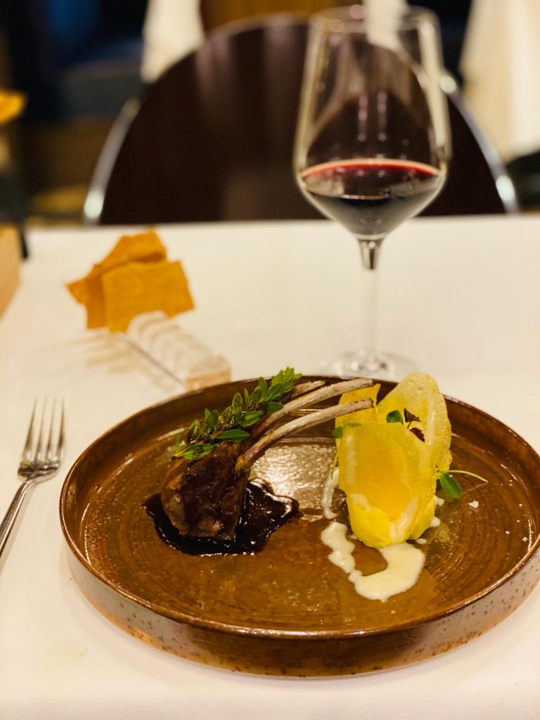 Il pranzo di degustazione prosegue poi con una chicca. Un abbinamento che ha fatto vincere ad Attisano un’importante competizione londinese. Parliamo delle costolette di agnello abruzzese con salsa di patate rosse di Cetica cotte sotto sale e cuore di formaggio abbinate al Semele Montefalco Sagrantino Passito DOCG 2014 di Signe. Si tratta di un passito dalla tendenza dolce ma con un tannino fresco. Questo consente un perfetto abbinamento con l’agnello perché la succulenza della carne viene asciugata dal tannino elegante del vino. La tendenza dolce dell’agnello, inoltre, si sposa alla perfezione con la nota finale del passito, spiccatamente zuccherina.