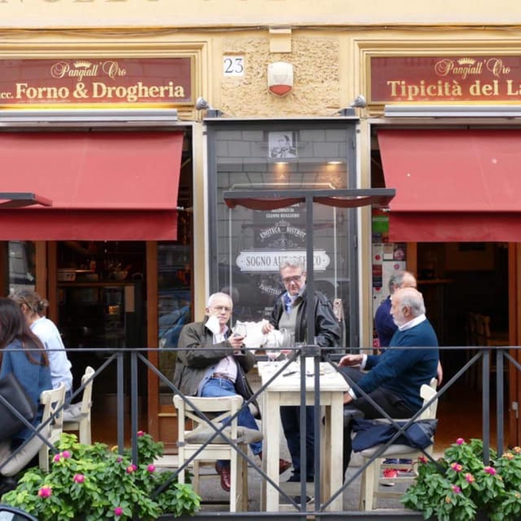 Al Sogno Autarchico si beve seduti all’aperto, oppure ci si accomoda all’interno che si snoda in due piccoli ambienti: all’ingresso c’è posto al banco dove si può consumare un buon caffè e si affettano salumi e formaggi, poco più in là un’altra saletta nel retro ci si accomoda al tavolo attorniati da bottiglie di pregio ben custodite. Le specialità della casa sono la focaccia, genovese come il suo proprietario Gianni, da gustare con fiordilatte di Agerola e pomodori san Marzano e la classica farinata.
